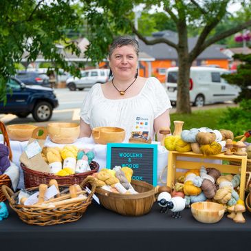 Handmade woolens (clothing and household items) and hand-turned wooden items.