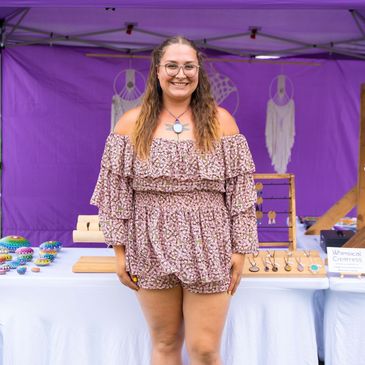 Whimsical Creatress offers eclectic artwork, including paintings, prints, macramé, molded candles, jewelry, and detailed carvings.