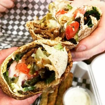 Mama Pita offers ready-to-eat pitas, poutine, deep-fried pickles, and fries, along with canned drinks and flavourful rice bowls for a satisfying meal.
